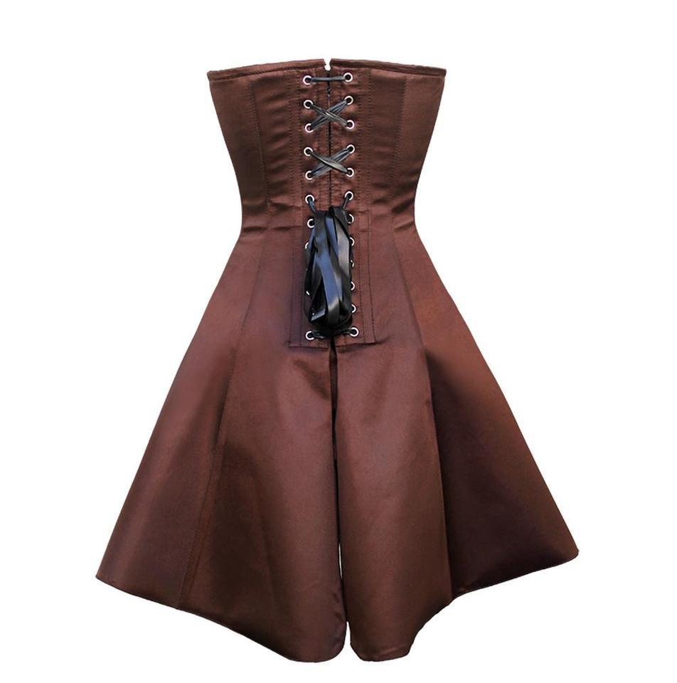 - Authentic Steel Boned Brown Satin Overbust Long Corset Dress