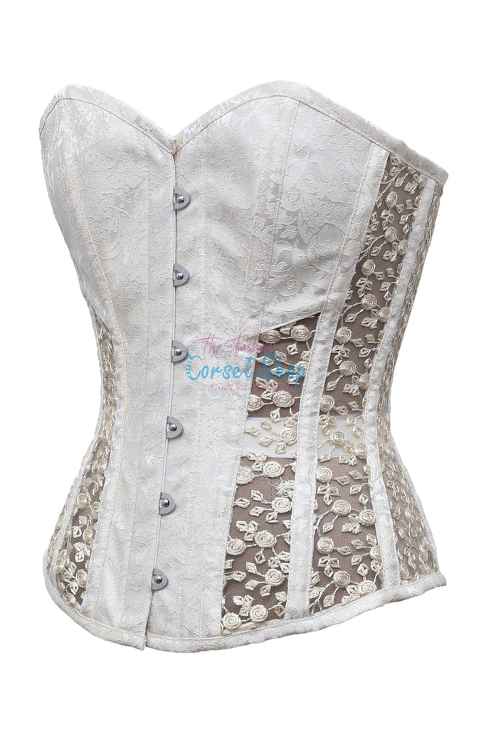 • Cream Brocade Embroidery Net Corset Corset