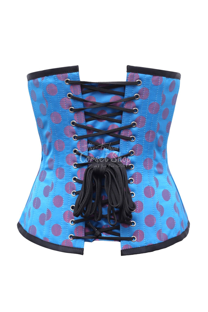 Ainsley Red Polka Dot On Turquoise Satin Underbust Corset
