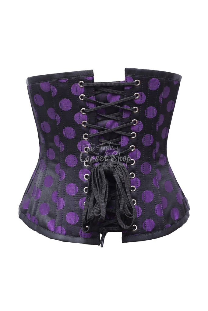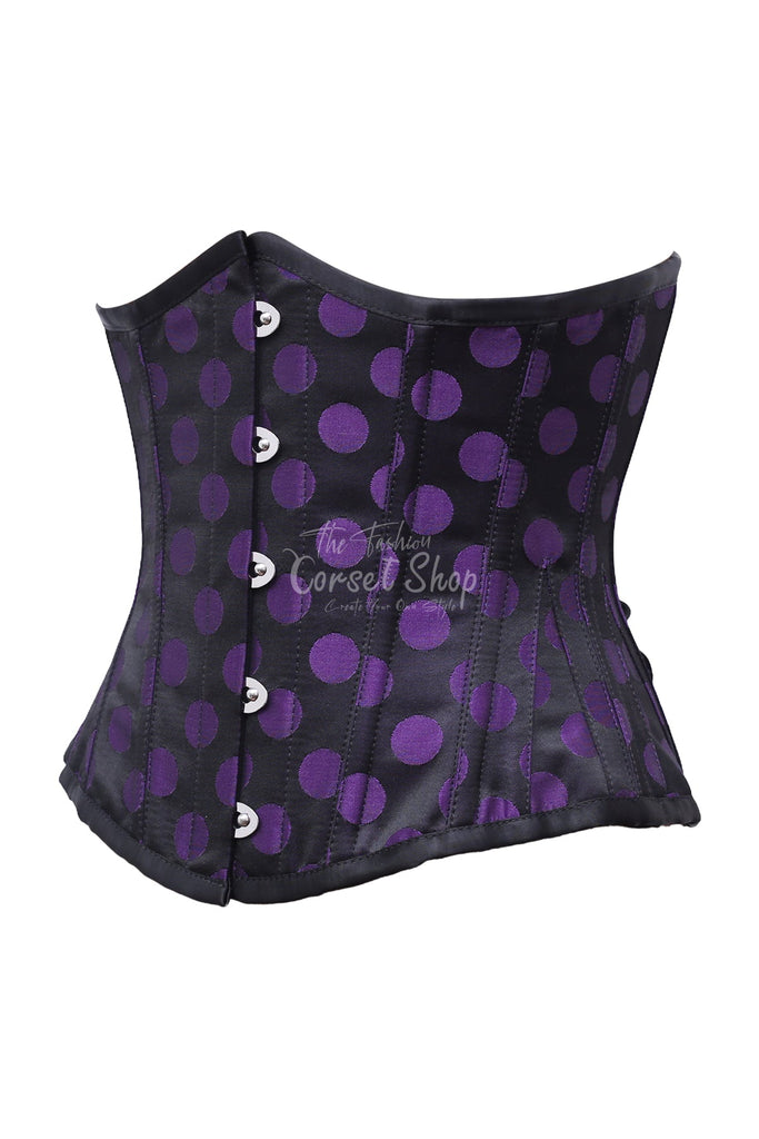 Henriella Purple Polka Dot On Black satin Underbust Corset