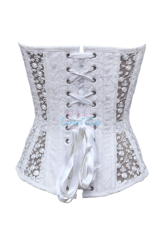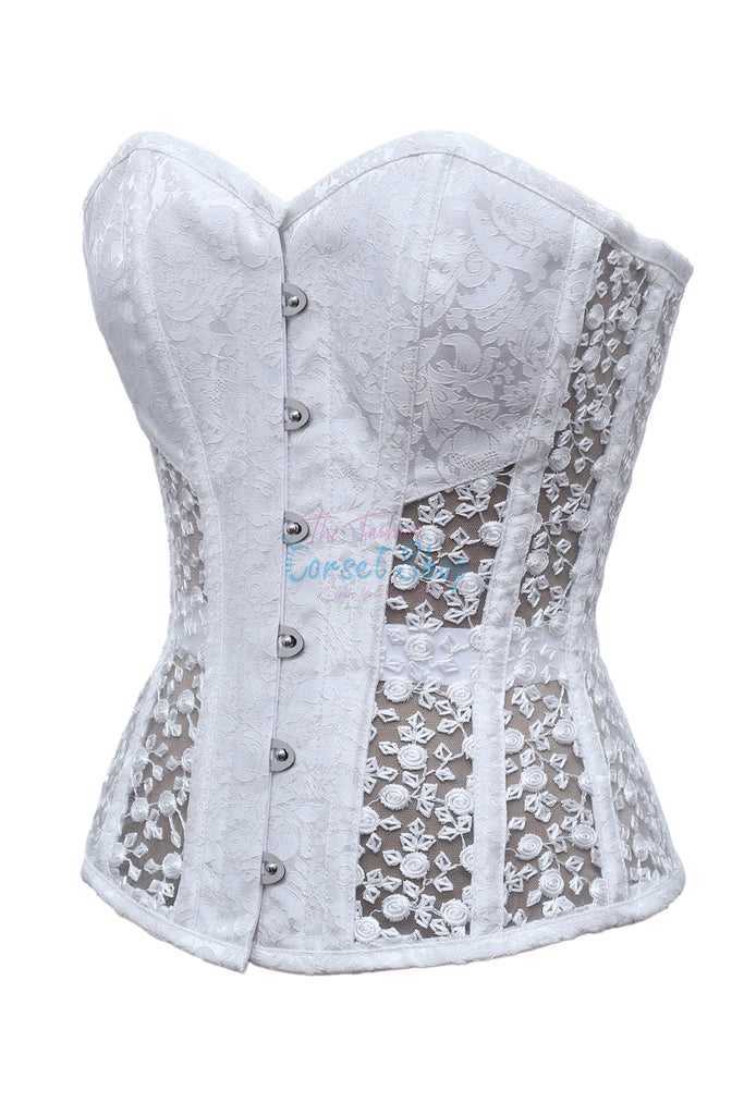 Milena White Brocade & Rose Floral Net Corset