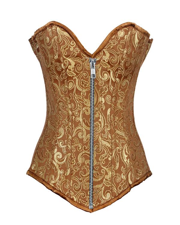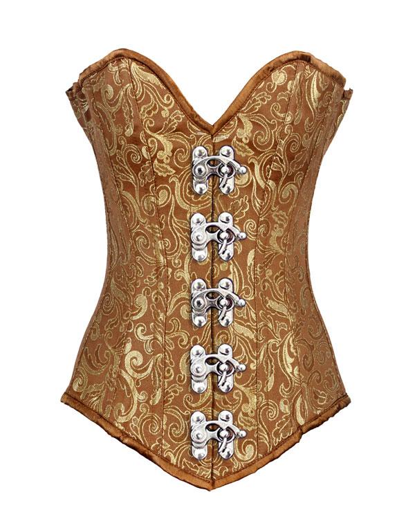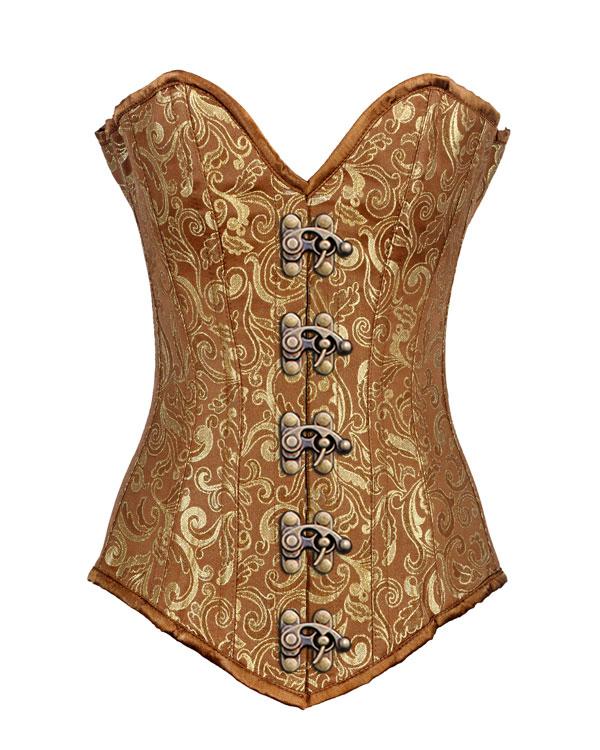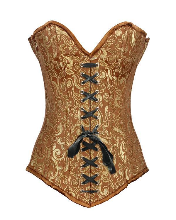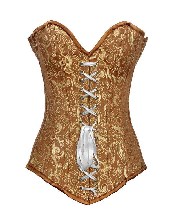 • Gold Brocade Longline Overbust Corset