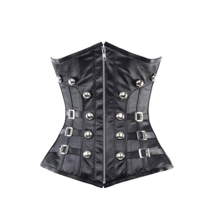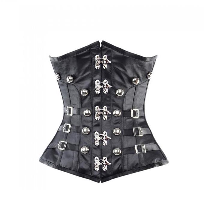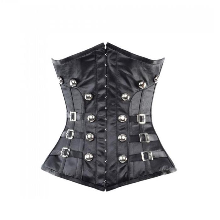 • Black Underbust Corset With Buckles & Stud Details