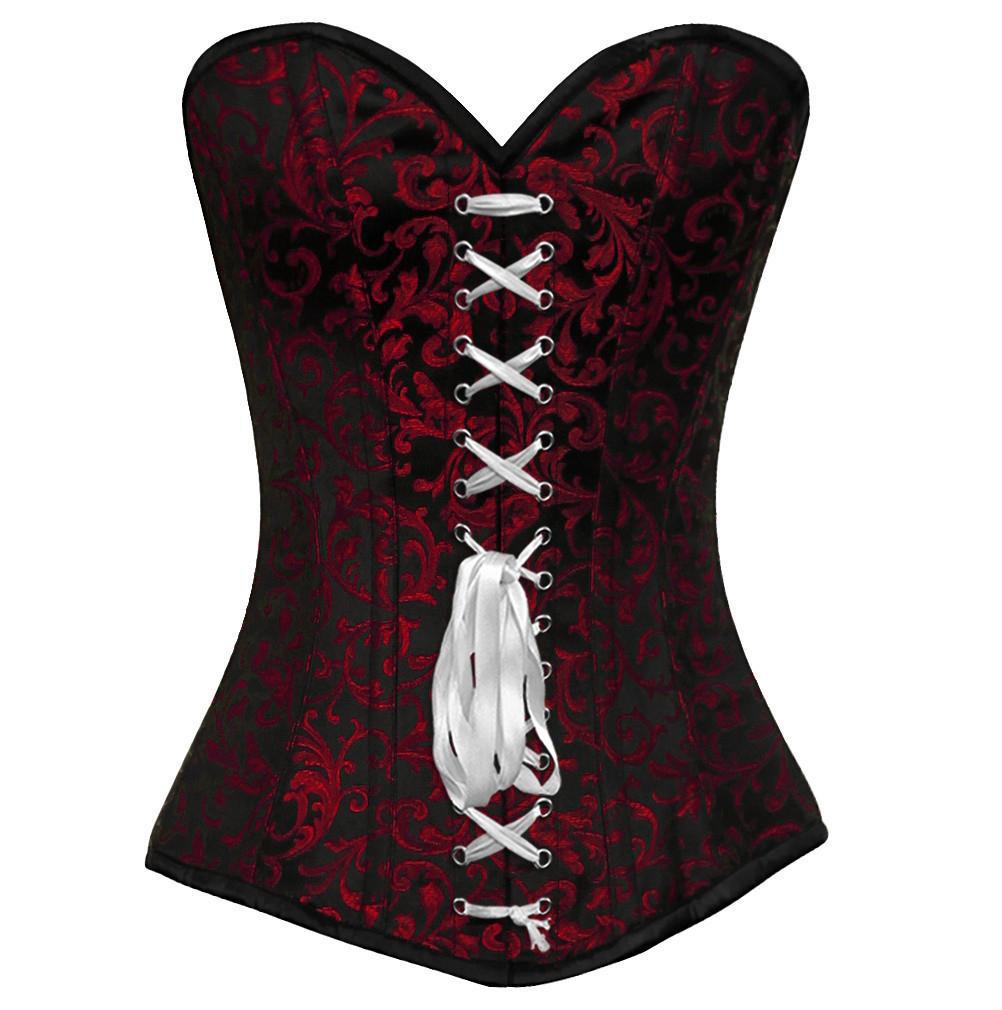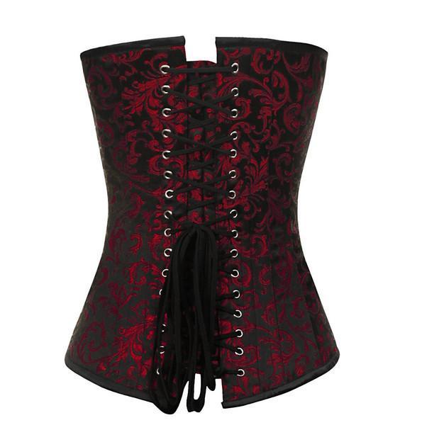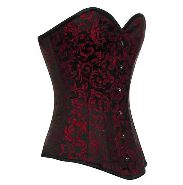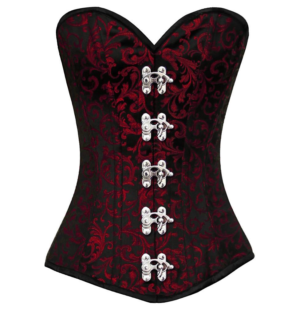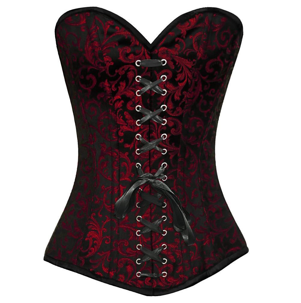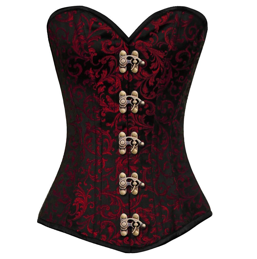 - Red Brocade Steampunk Overbust Corset