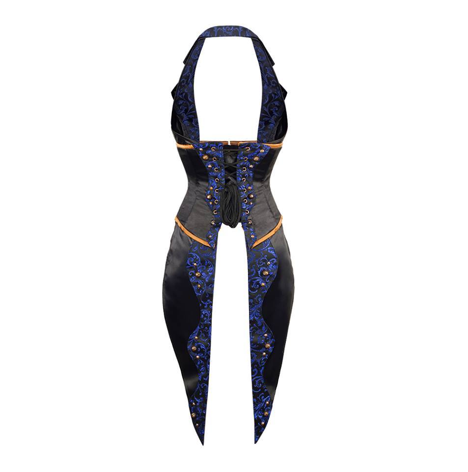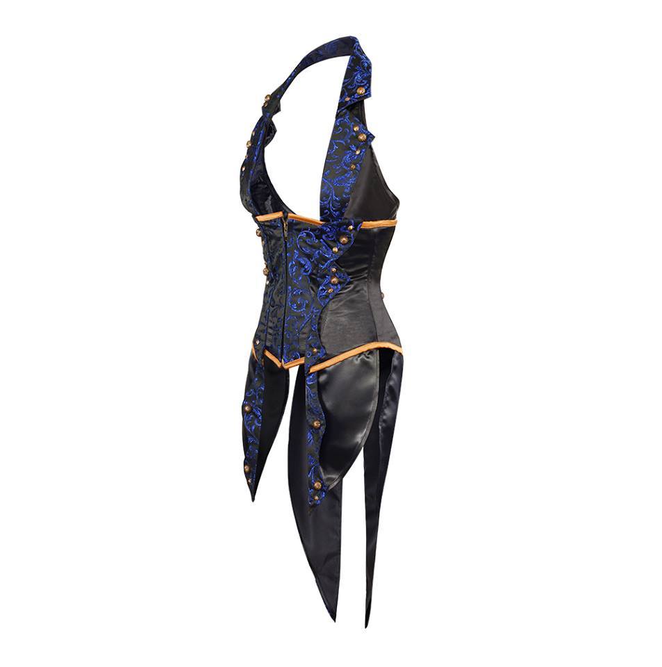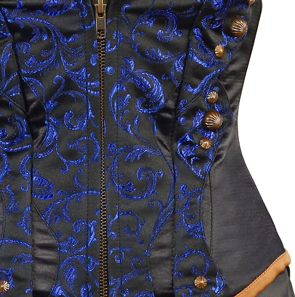 - Steel Boned Blue Brocade & Black Satin Underbust Corset