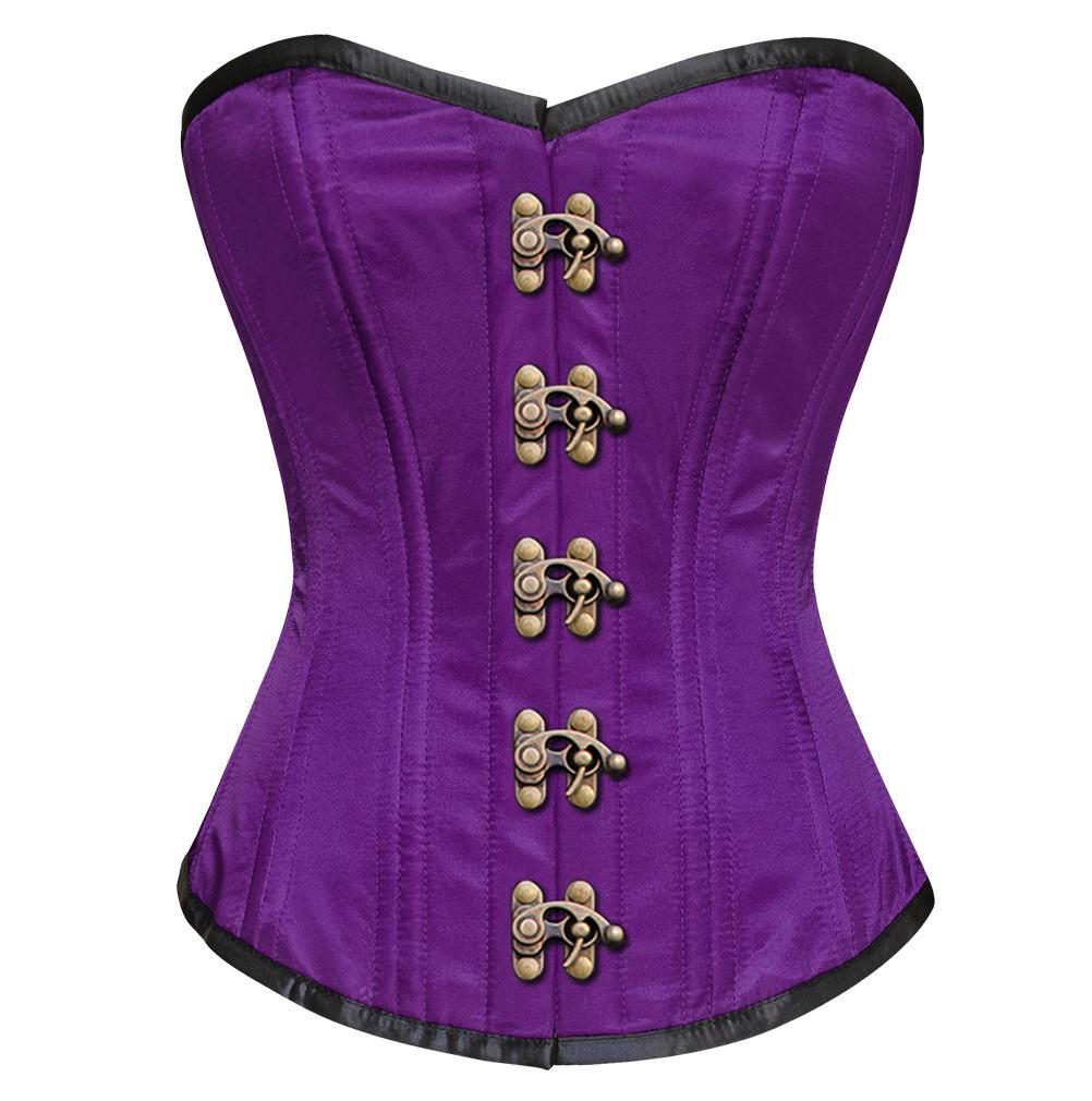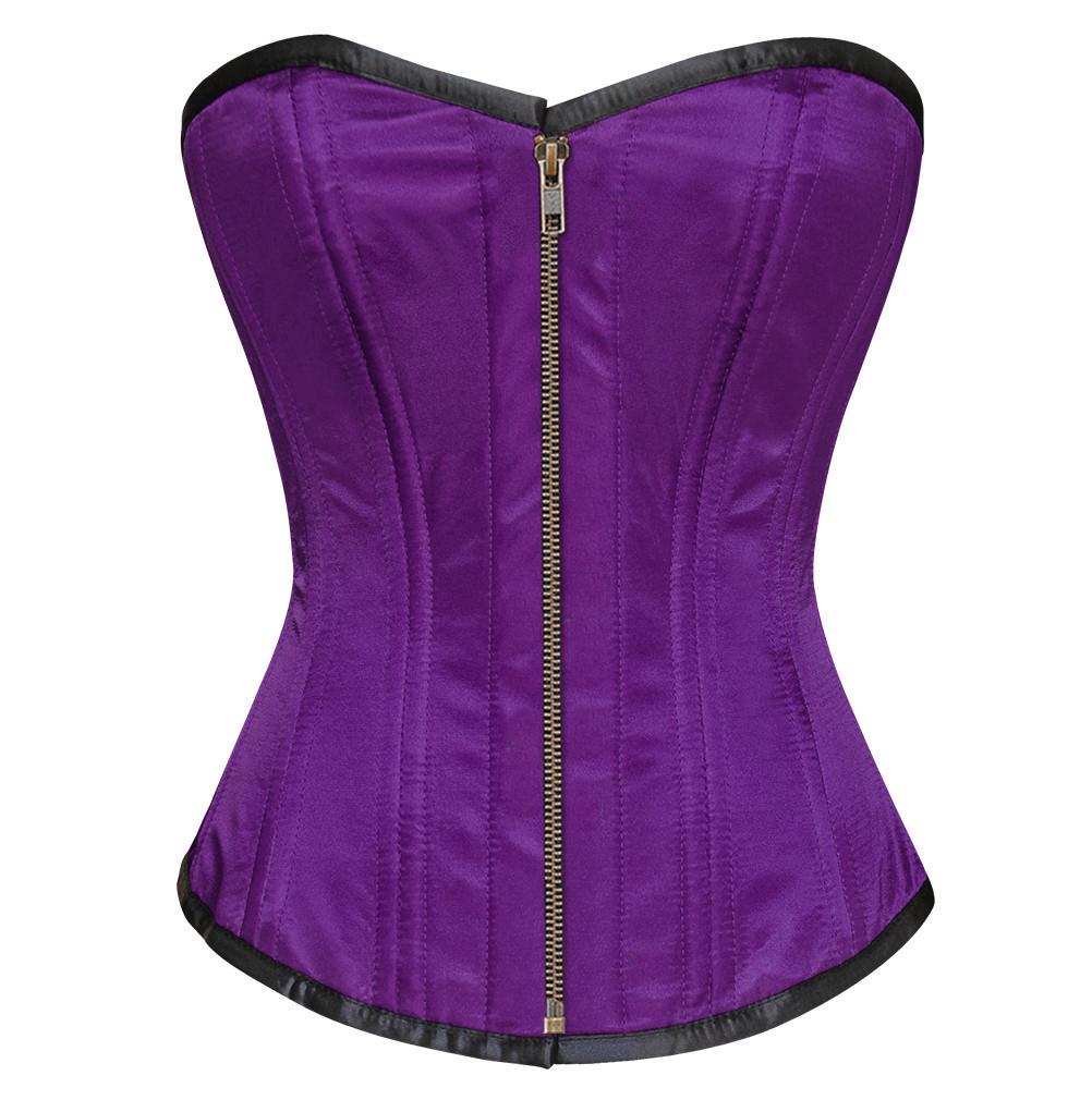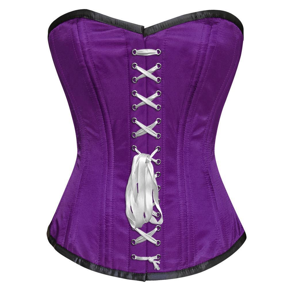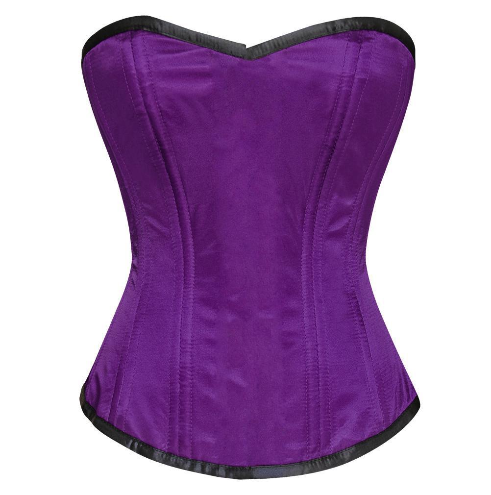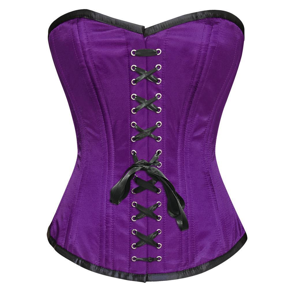 - Purple Satin Overbust Waist Training Corset