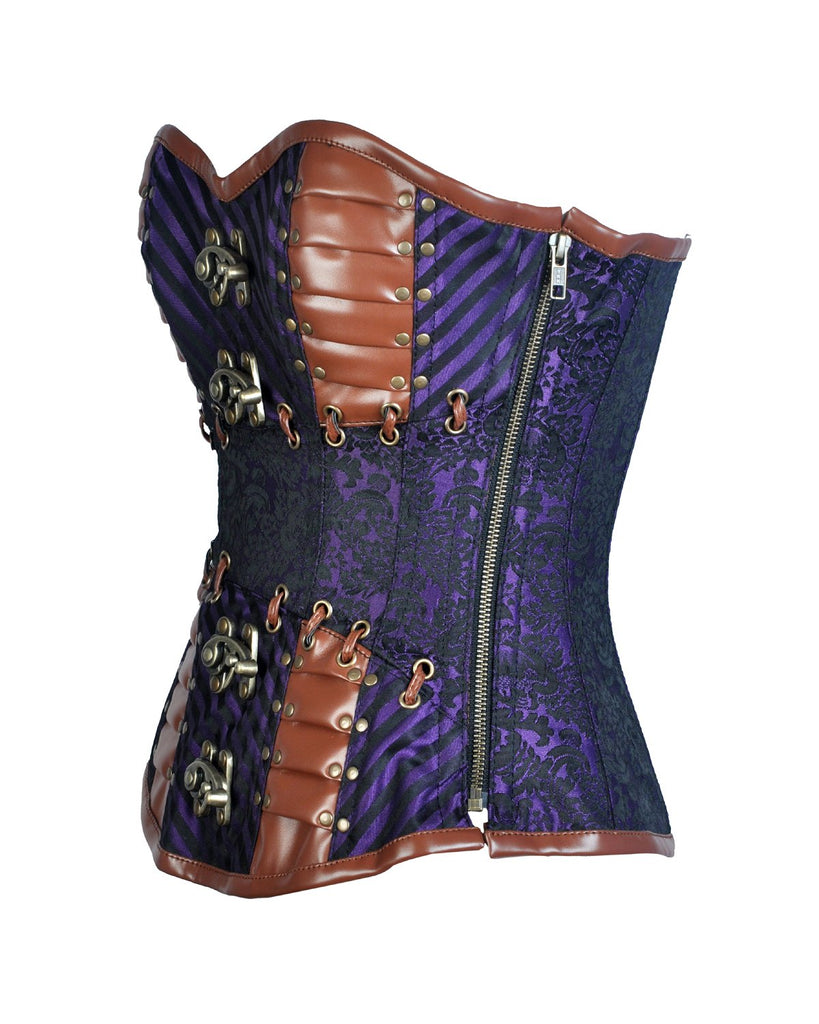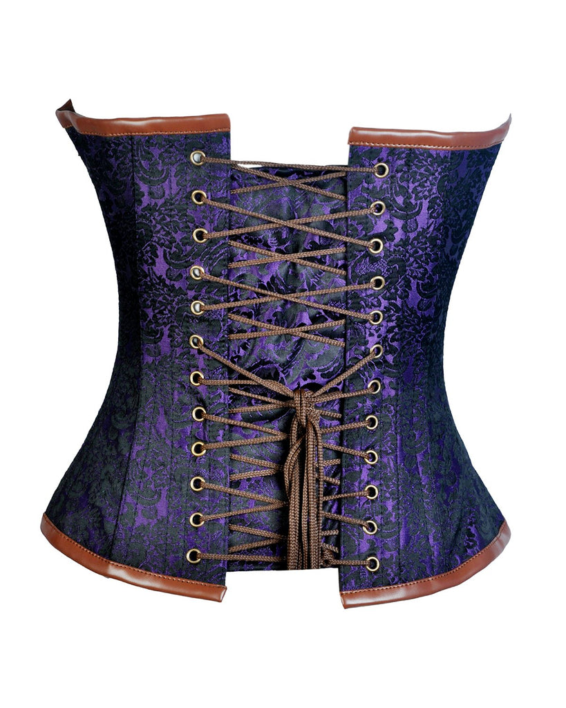 - Purple Brocade & Brown Faux Leather Gothic Corset