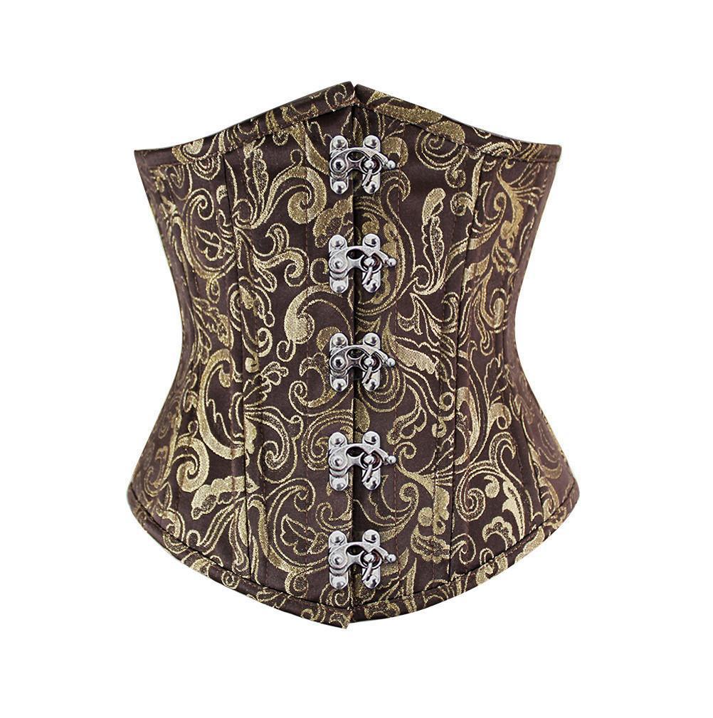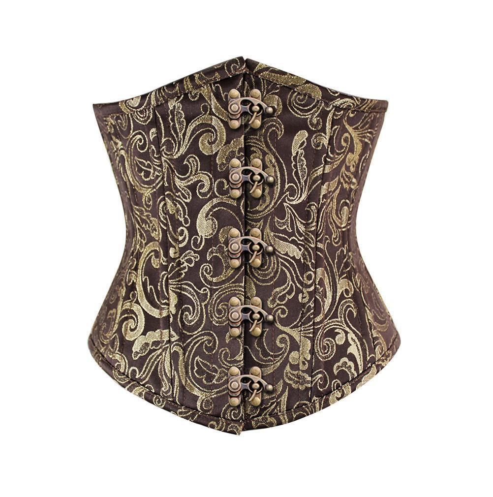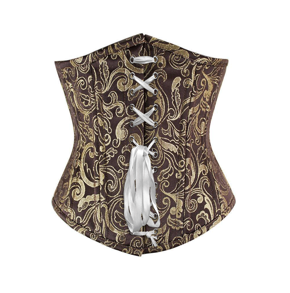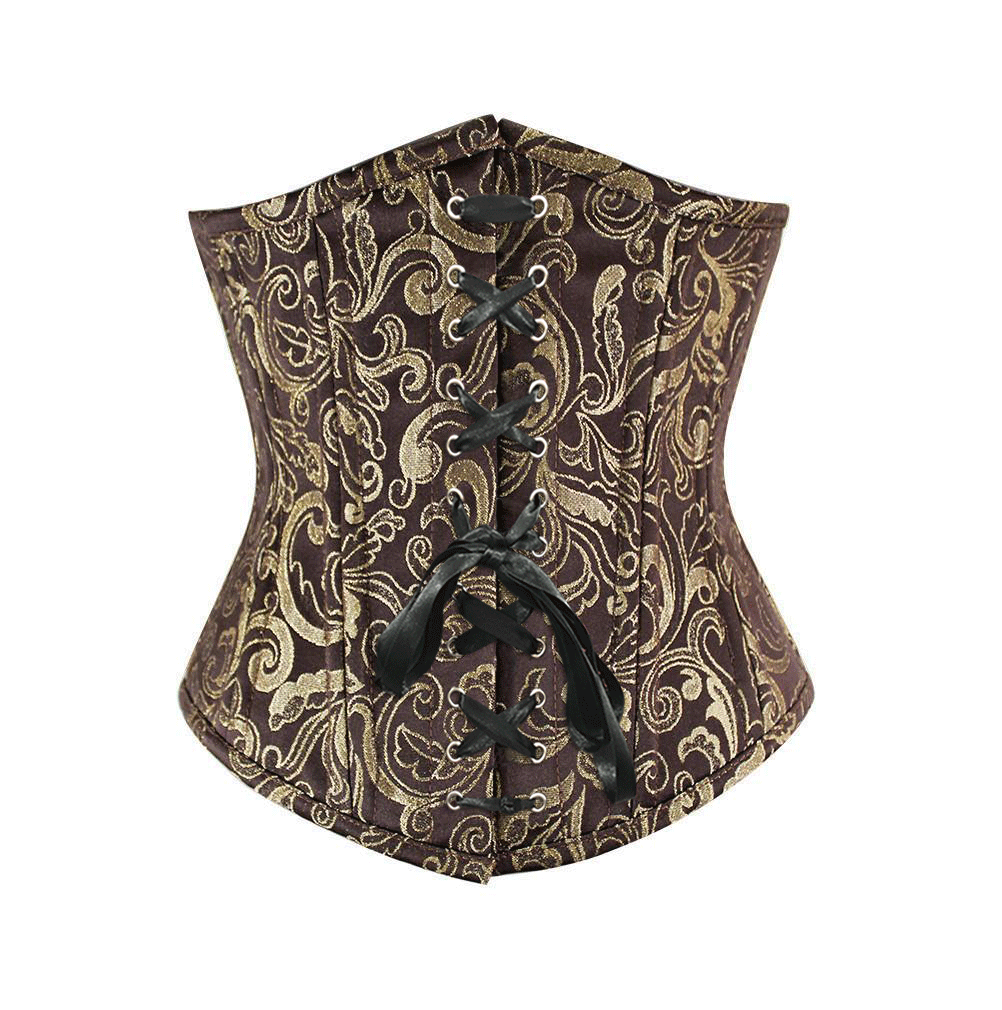 - Brown Brocde Underbust Waist Training Corset