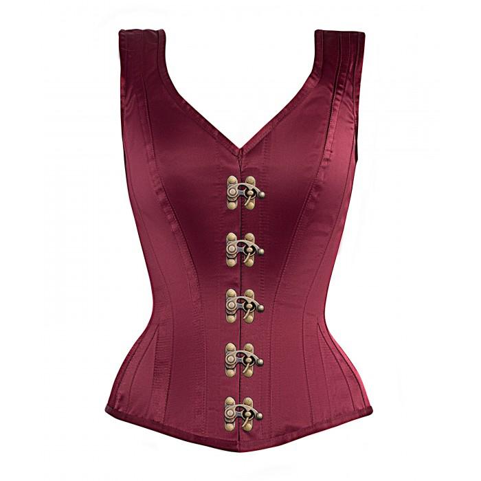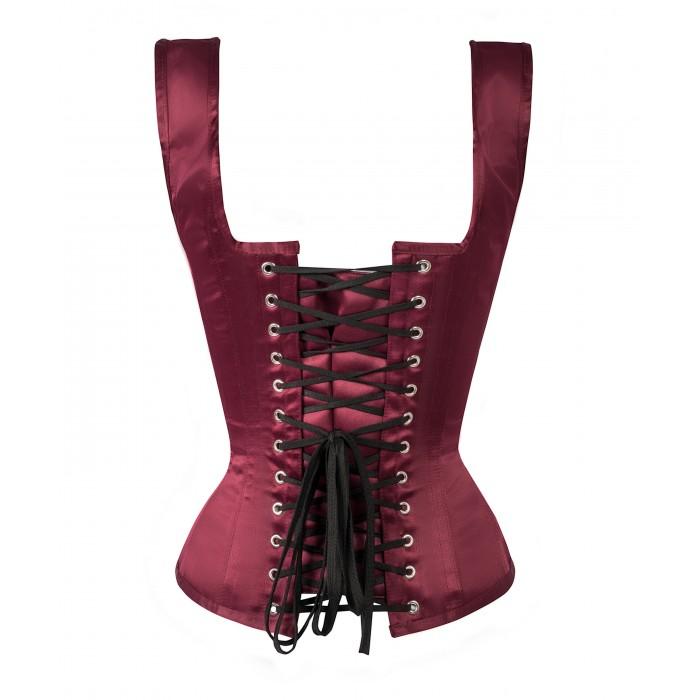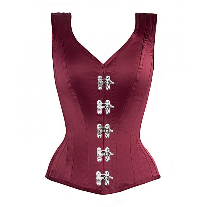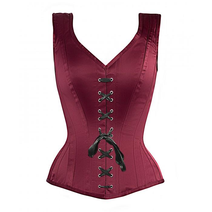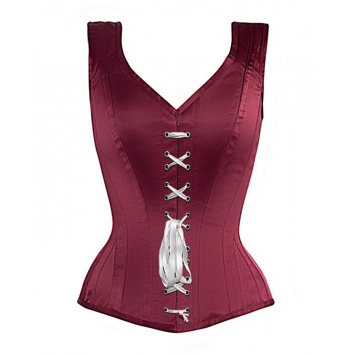 - Authentic Steel Boned Burgundy Satin Overbust Corset
