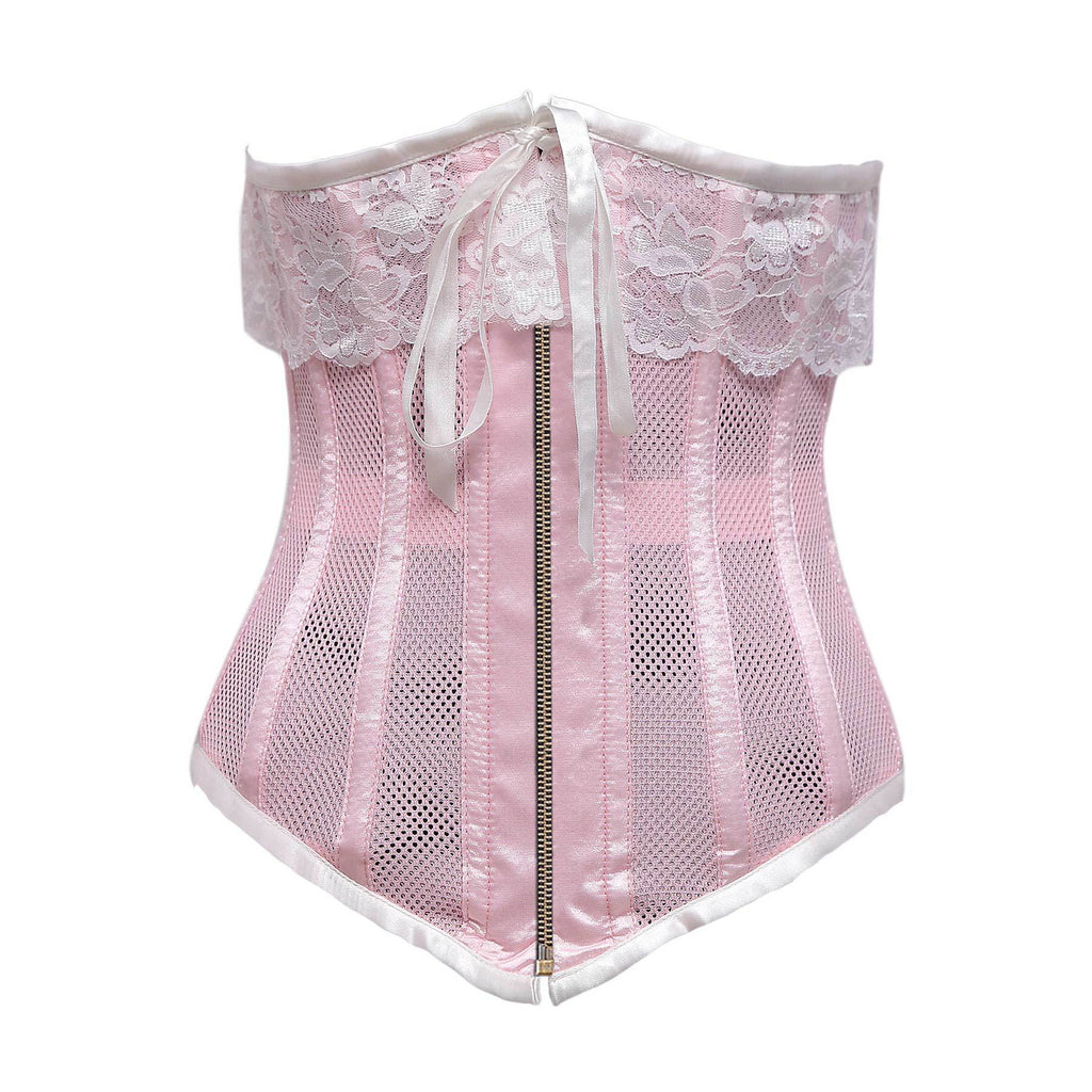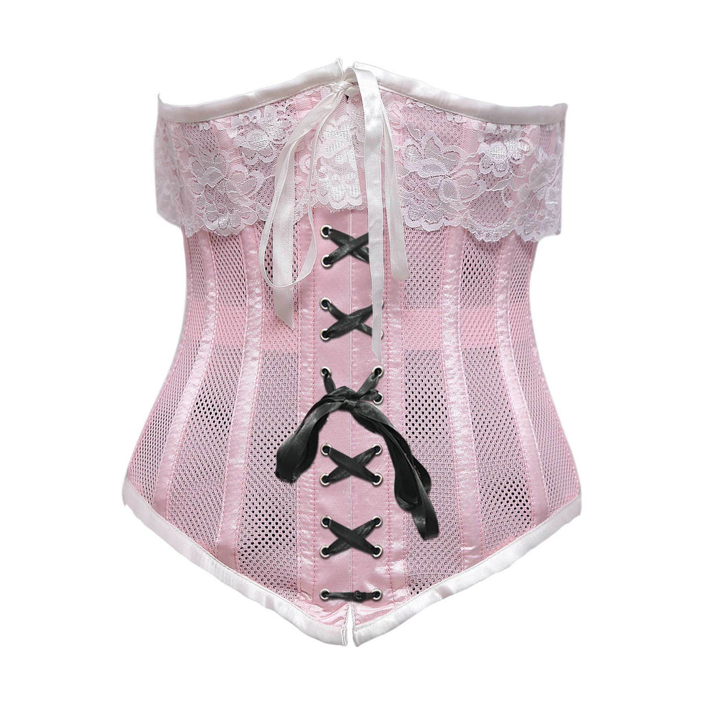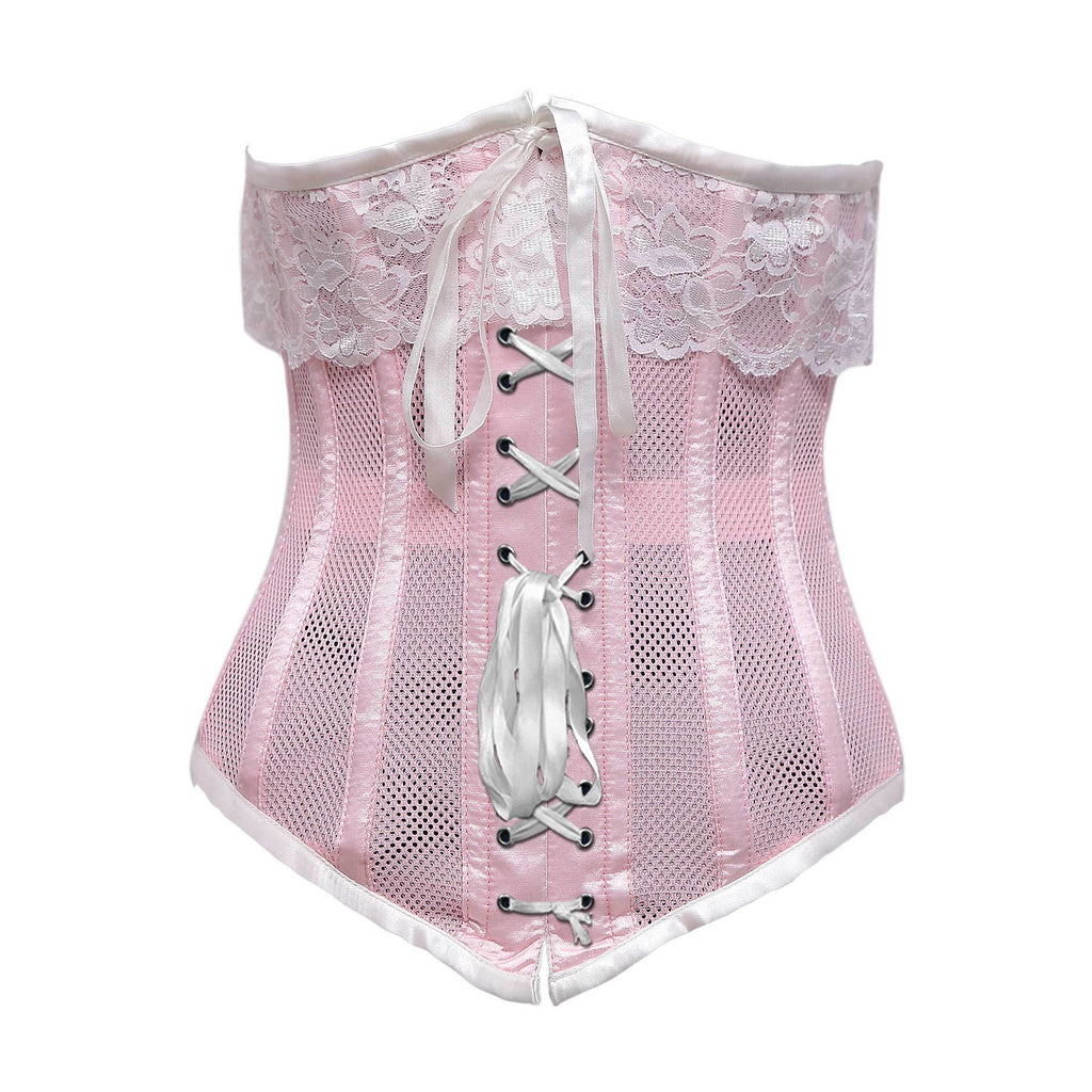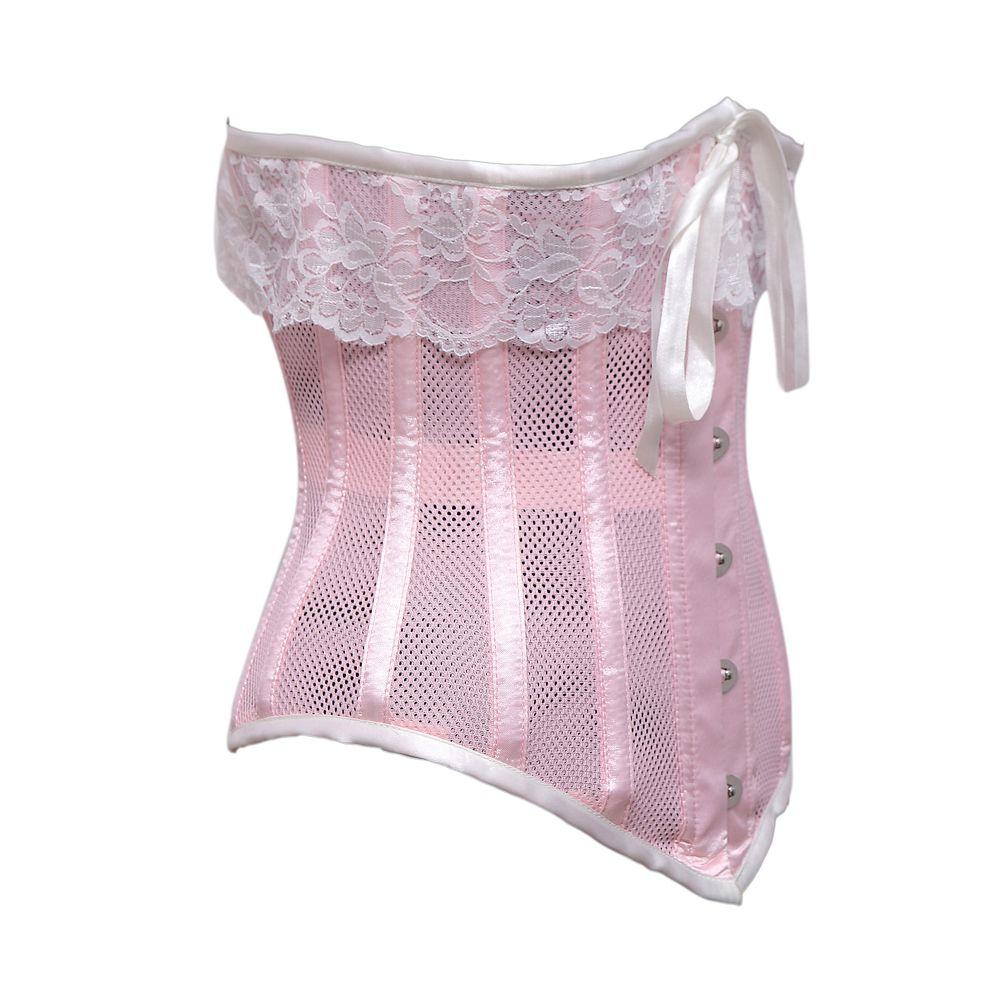 - Baby Pink Mesh & White Satin Lace Underbust Corset