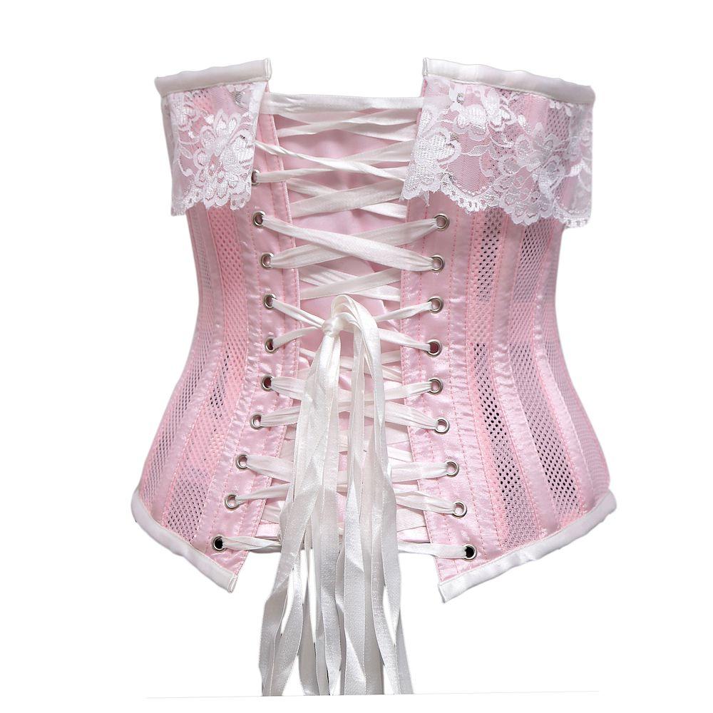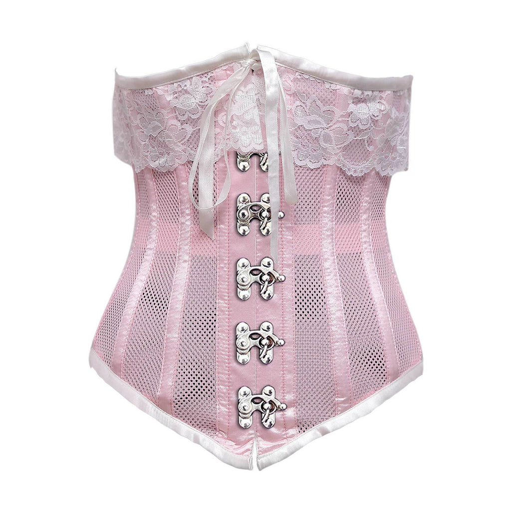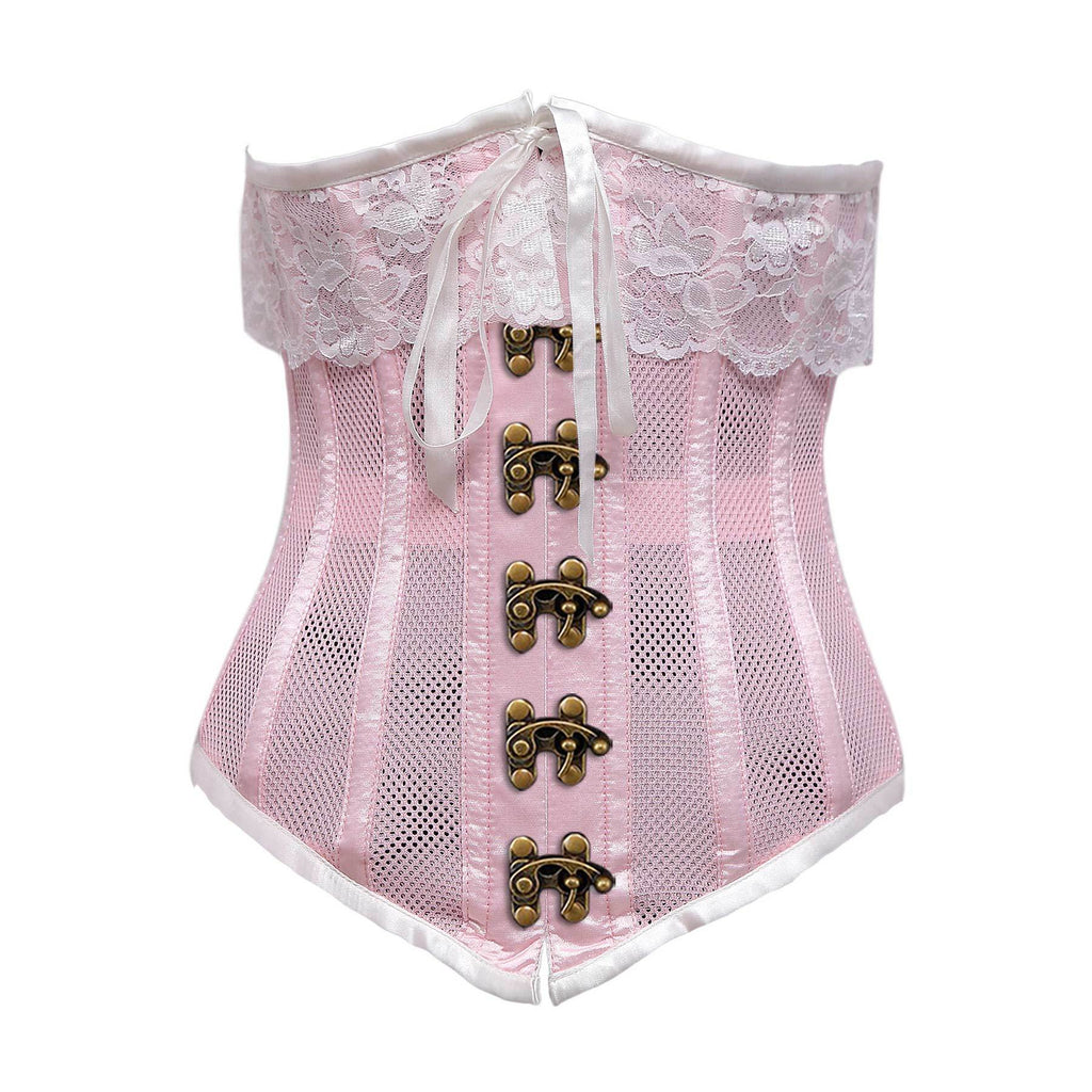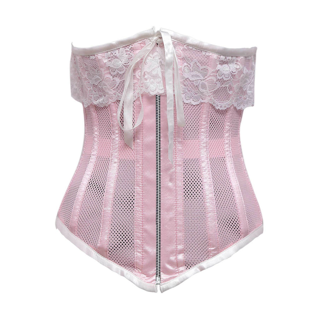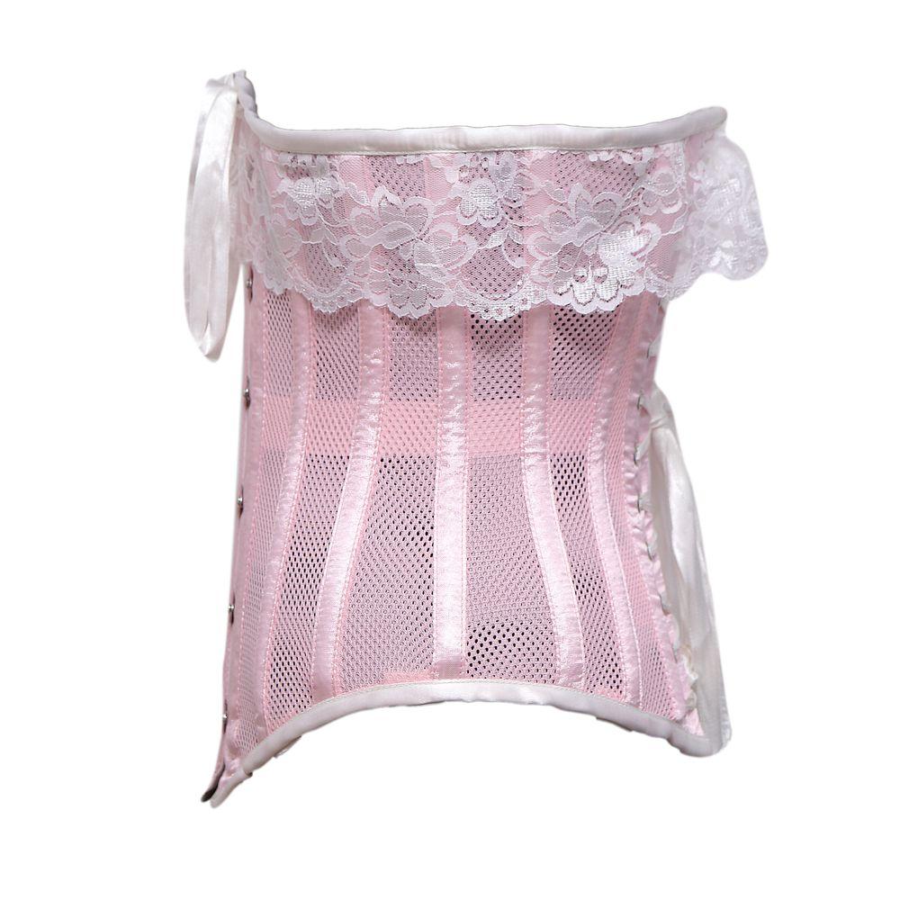 - Baby Pink Mesh & White Satin Lace Underbust Corset