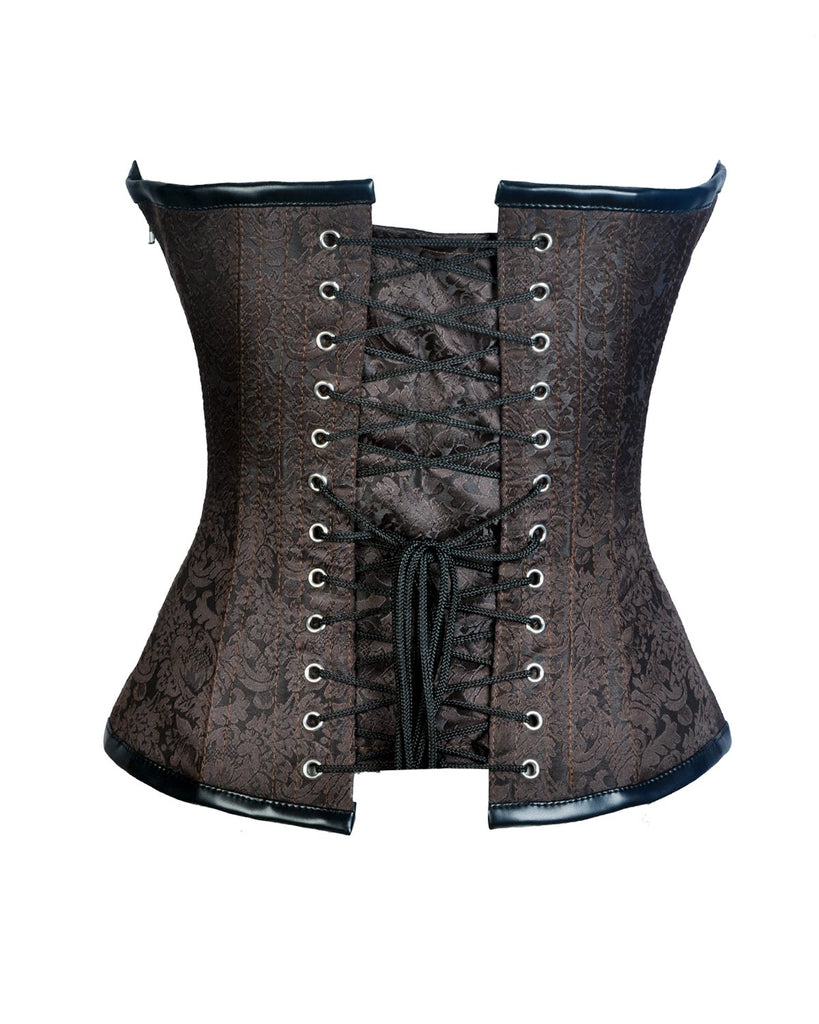 - Coffee Brown Brocade & Black Faux Leather Steampunk Corset