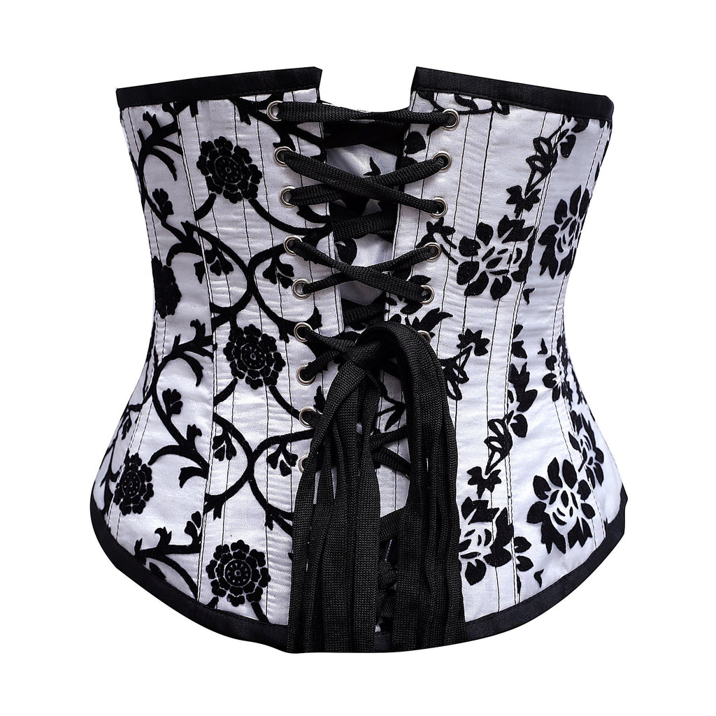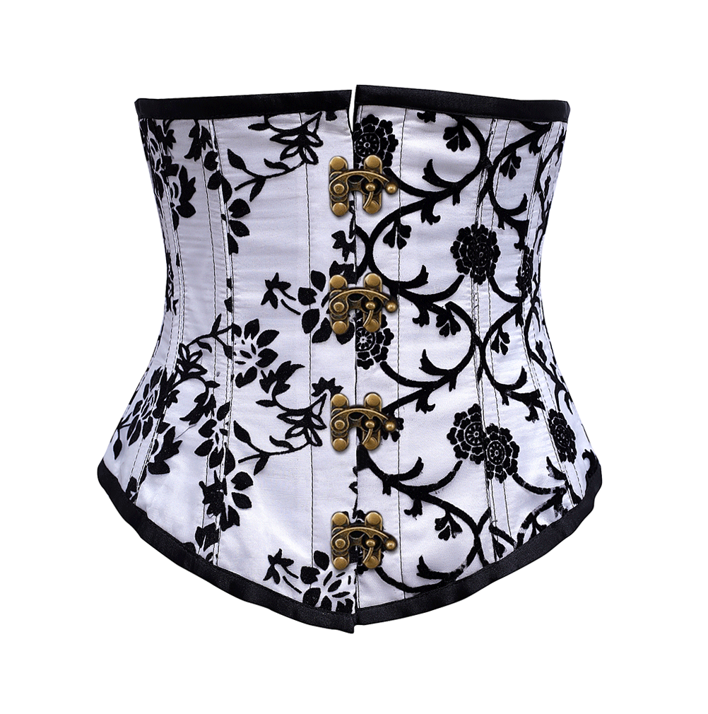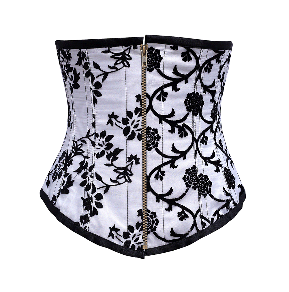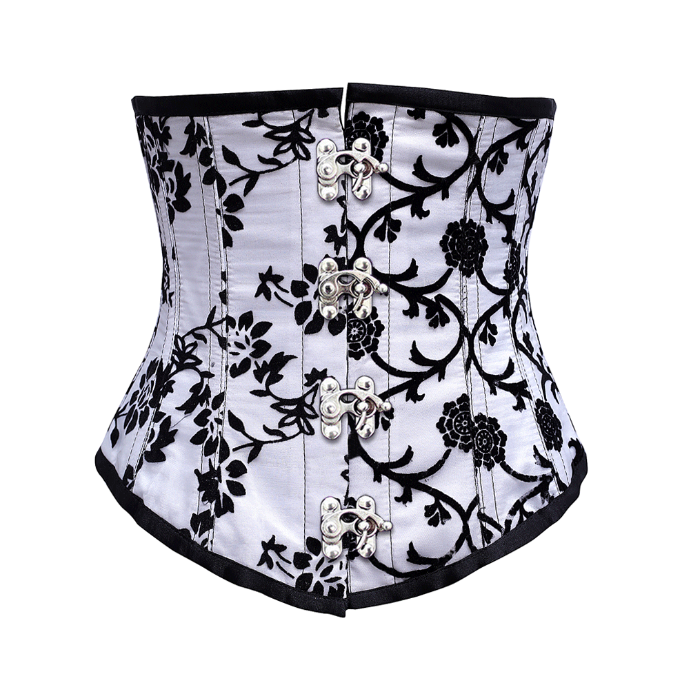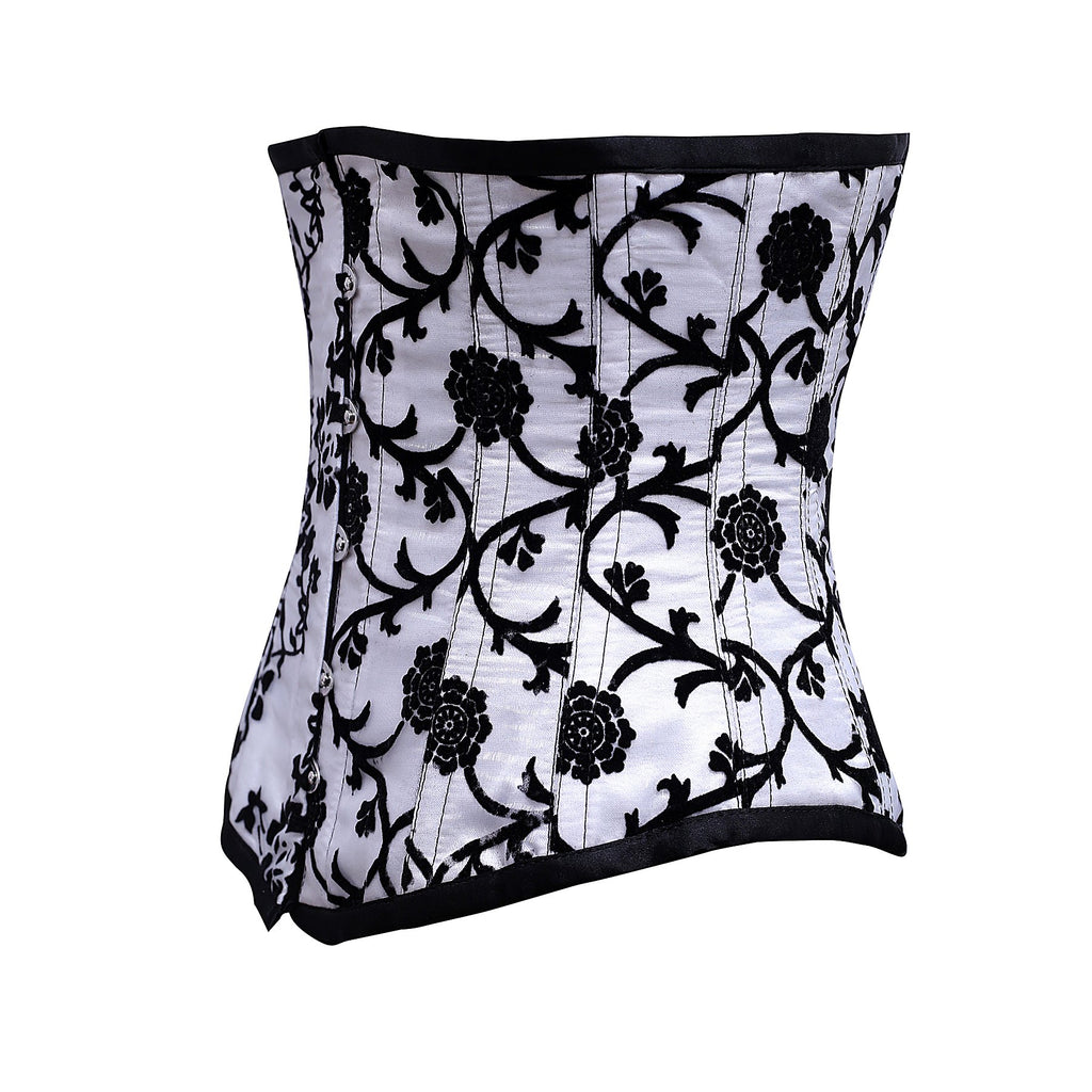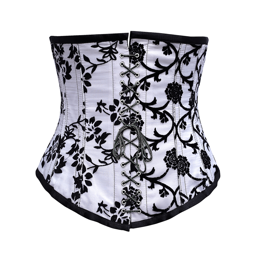 • Steel Bone White Satin Underbust Corset In Tissue Flocking