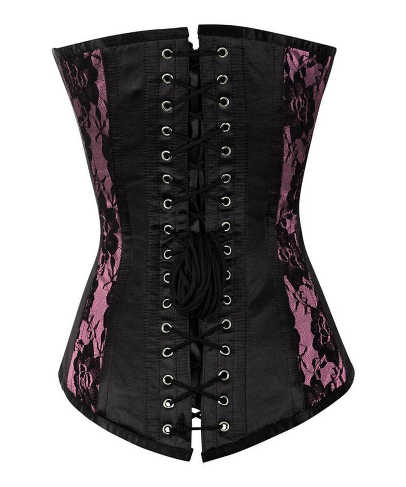 - Spiral Steel Boned Pink & Black Satin Overbust Lace Corset