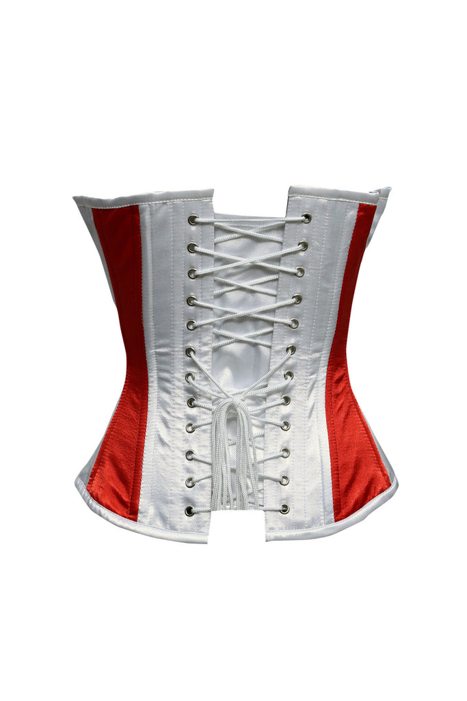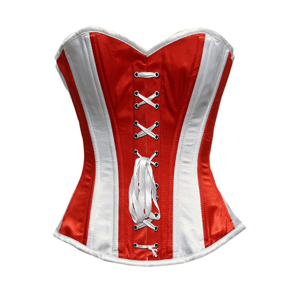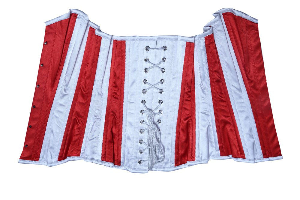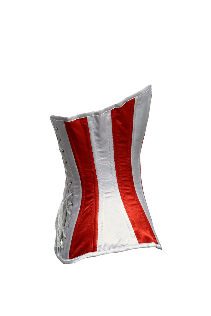 Red & White Satin̴Ì_Overbust Waist Training Corset