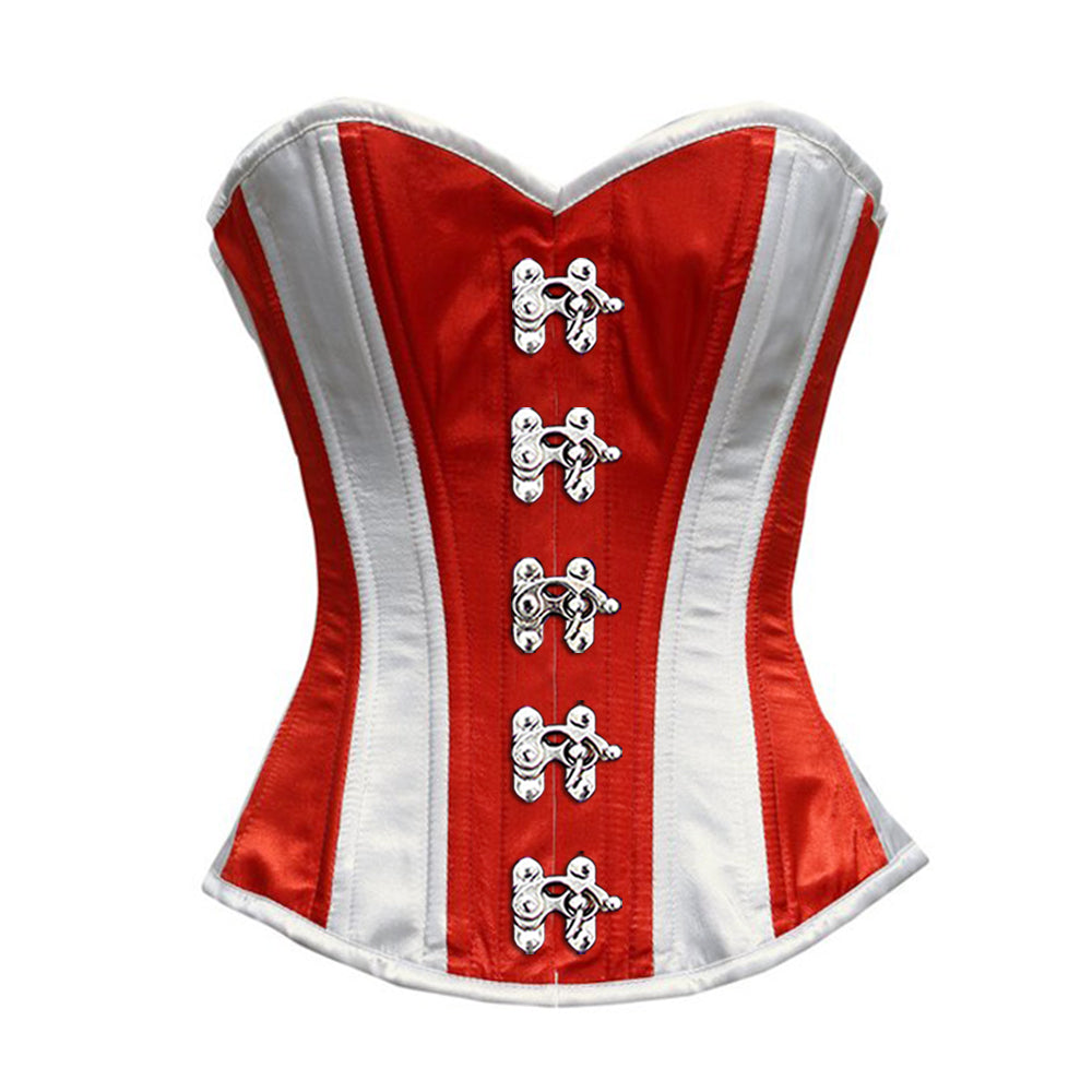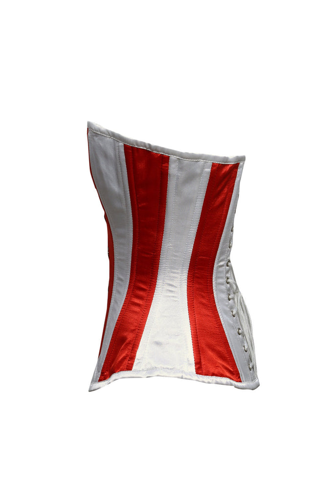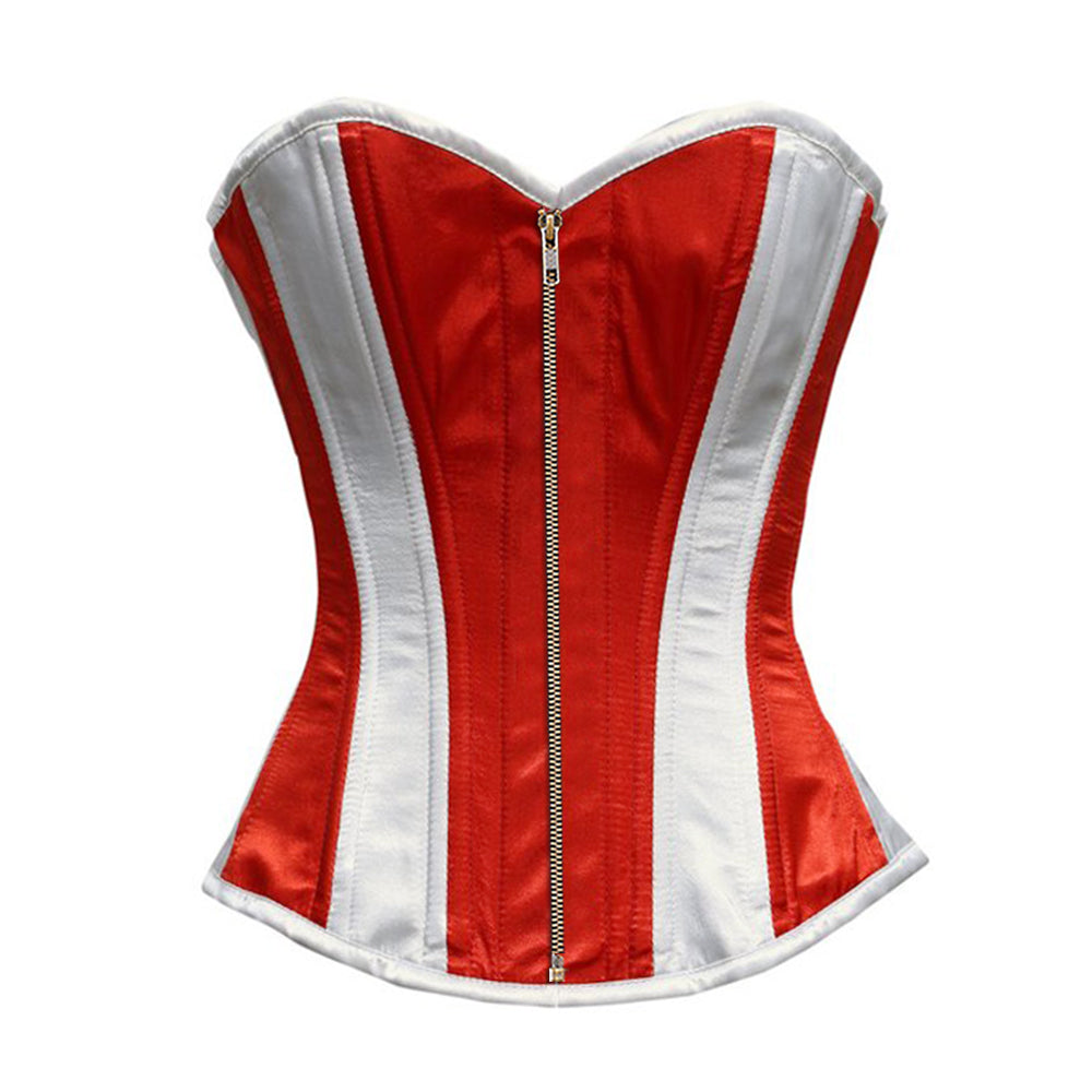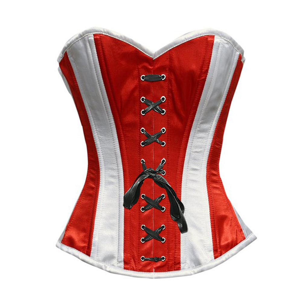 Red & White Satin̴Ì_Overbust Waist Training Corset