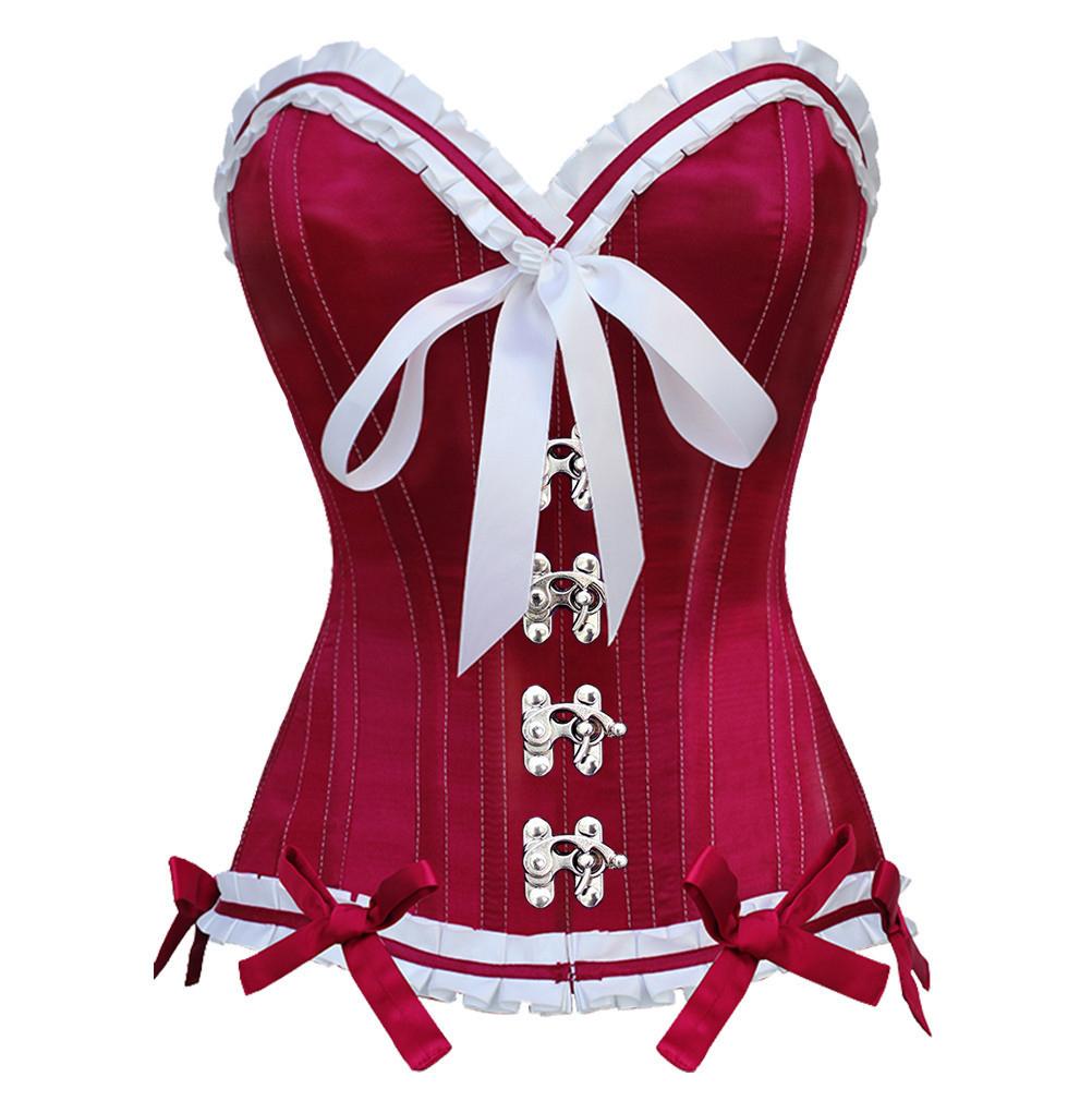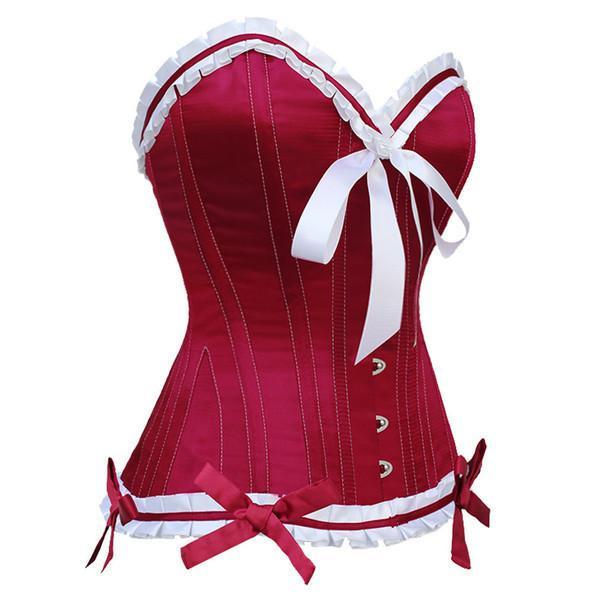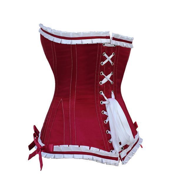 - Maroon Satin Overbust Corset With Contrast Bow & Pleats