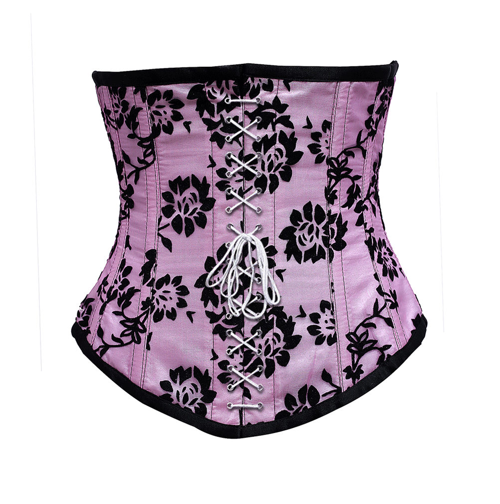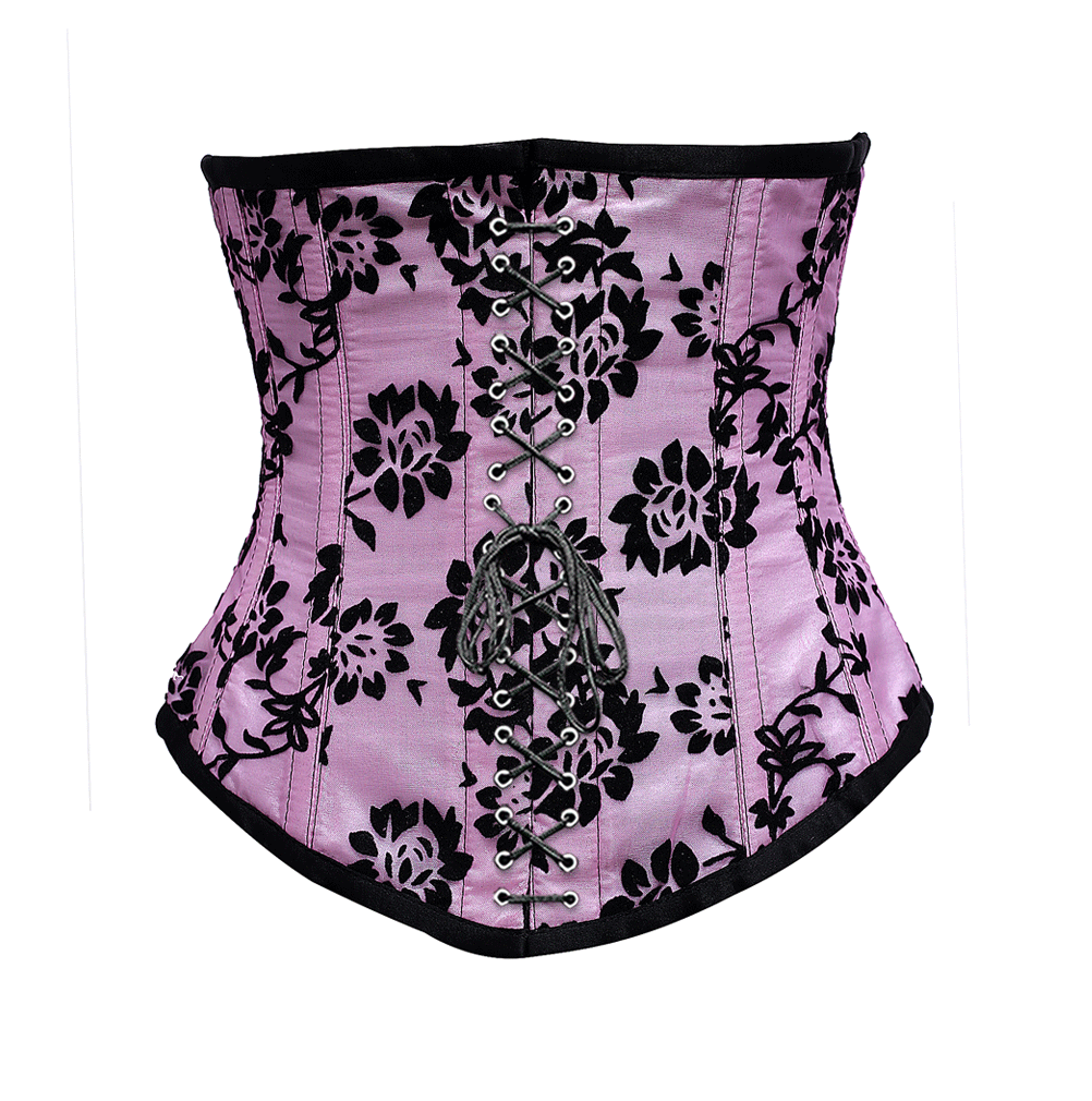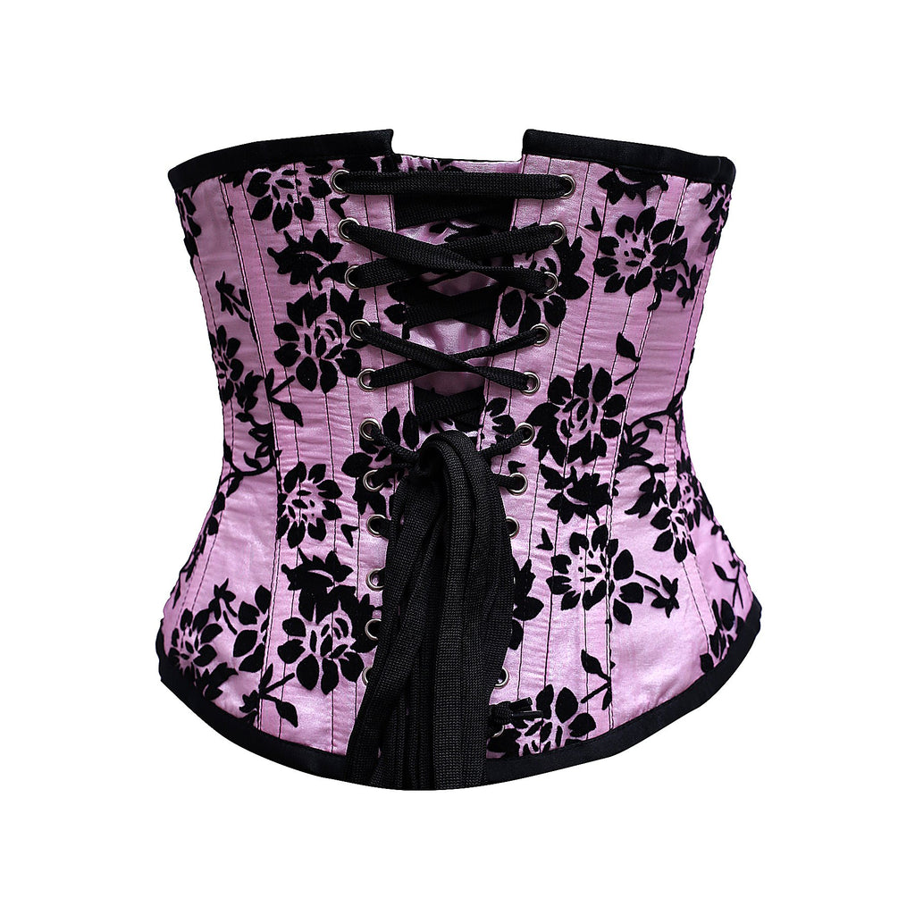 - Steel Bone Pink Satin Underbust Corset In Tissue Flocking