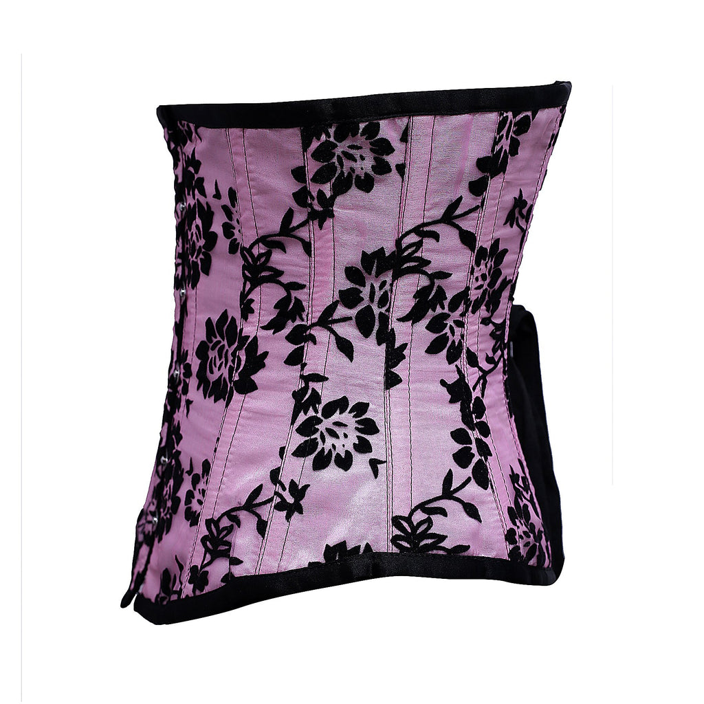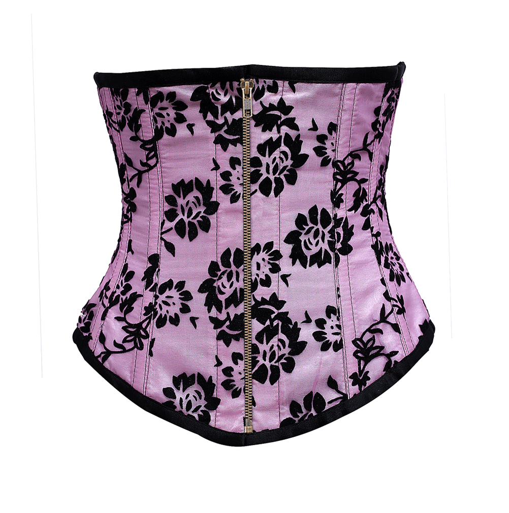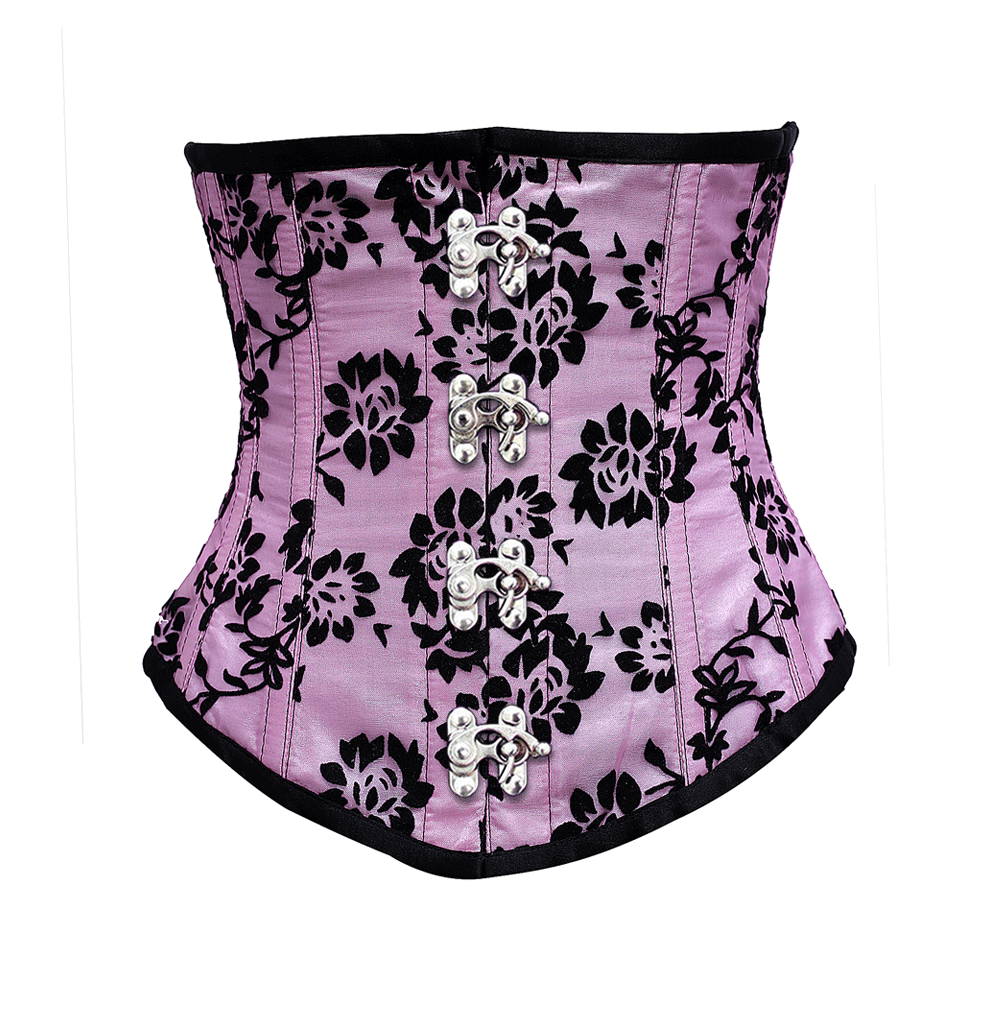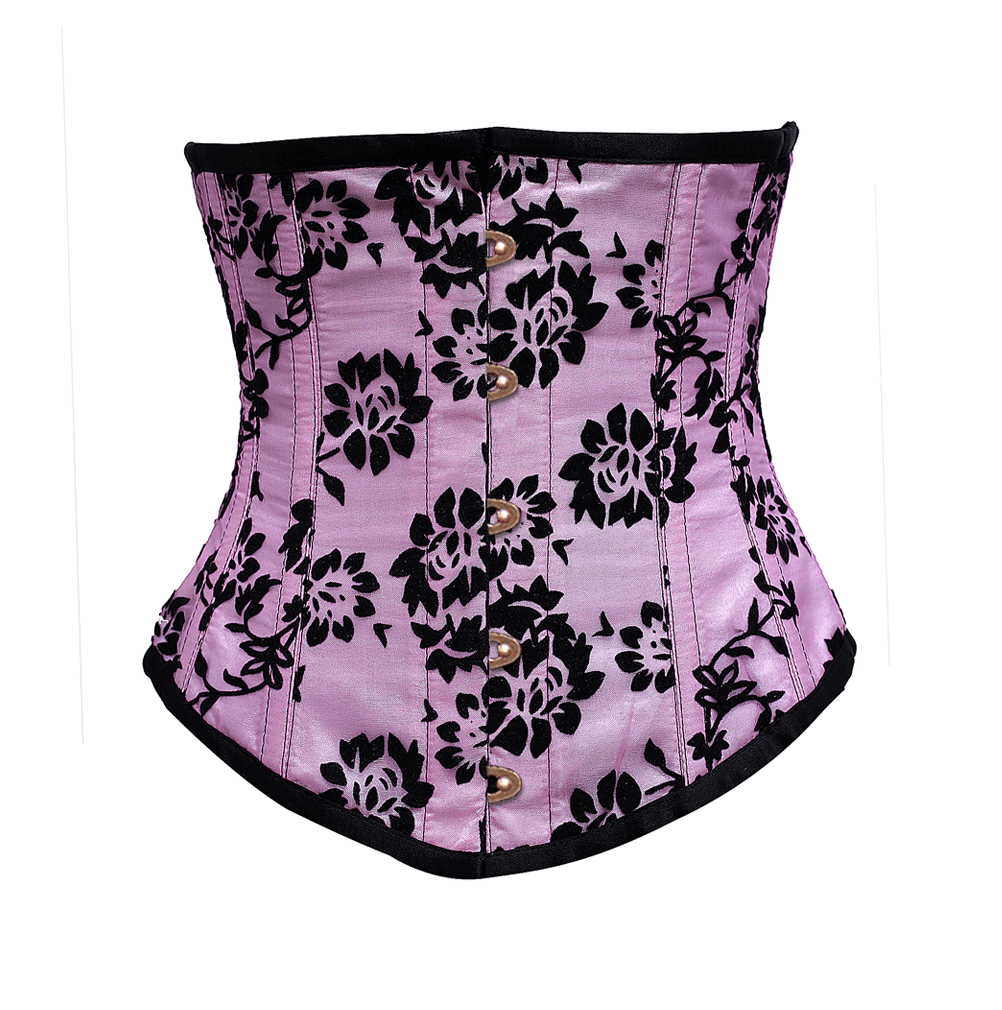 - Steel Bone Pink Satin Underbust Corset In Tissue Flocking