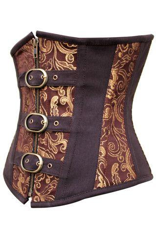 - Gold and Brown Brocade Underbust Corset With Buckles