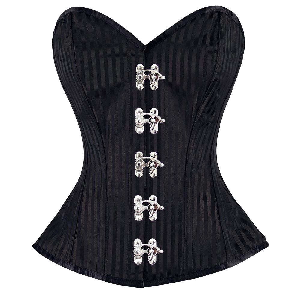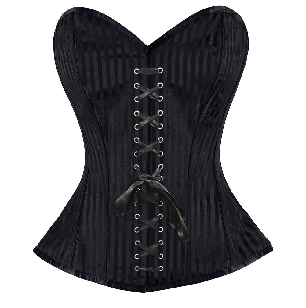- Black Brocade Overbust Steek Boned Corset Corset