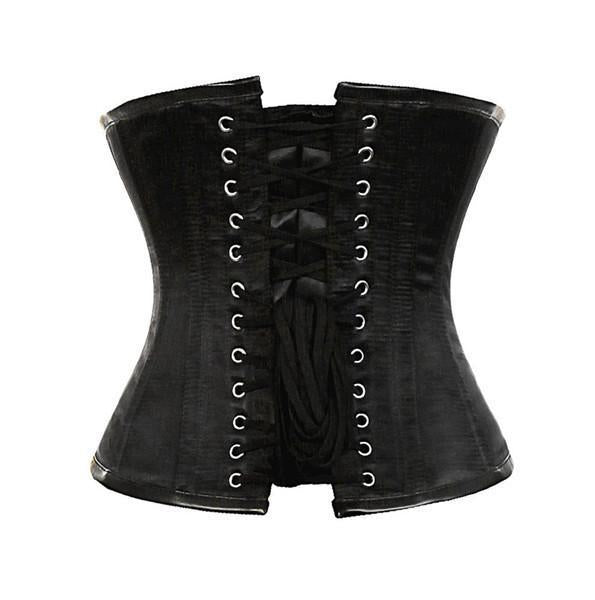 - Black Satin & Faux Leather Overbust Corset