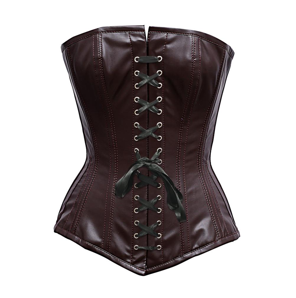 - Steel Boned Brown Faux Leather Corset